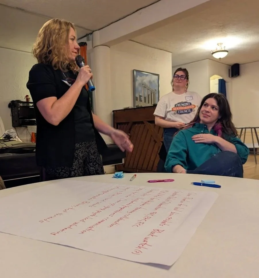 We started with a round of introductions. Who are you, what part of Fremont do you live in, and what is one of your favorite things about Fremont? We heard from long-time residents, younger people and newcomers, the District 6 Director, representatives of the Fremont Chamber of Commerce and the Fremont Arts Council, business owners, students, and a variety of people in the creative economy - but most importantly, people interested in their community and their neighbors.